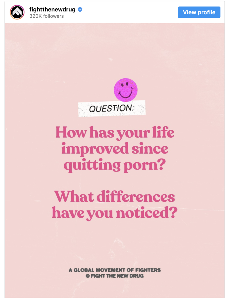 While Fight the New Drug is not a recovery-focused organization—we primarily focus on educating about the harmful effects of porn and its connections to sexual exploitation—quite a few people follow this movement because they’ve experienced how harmful porn can be in their lives.