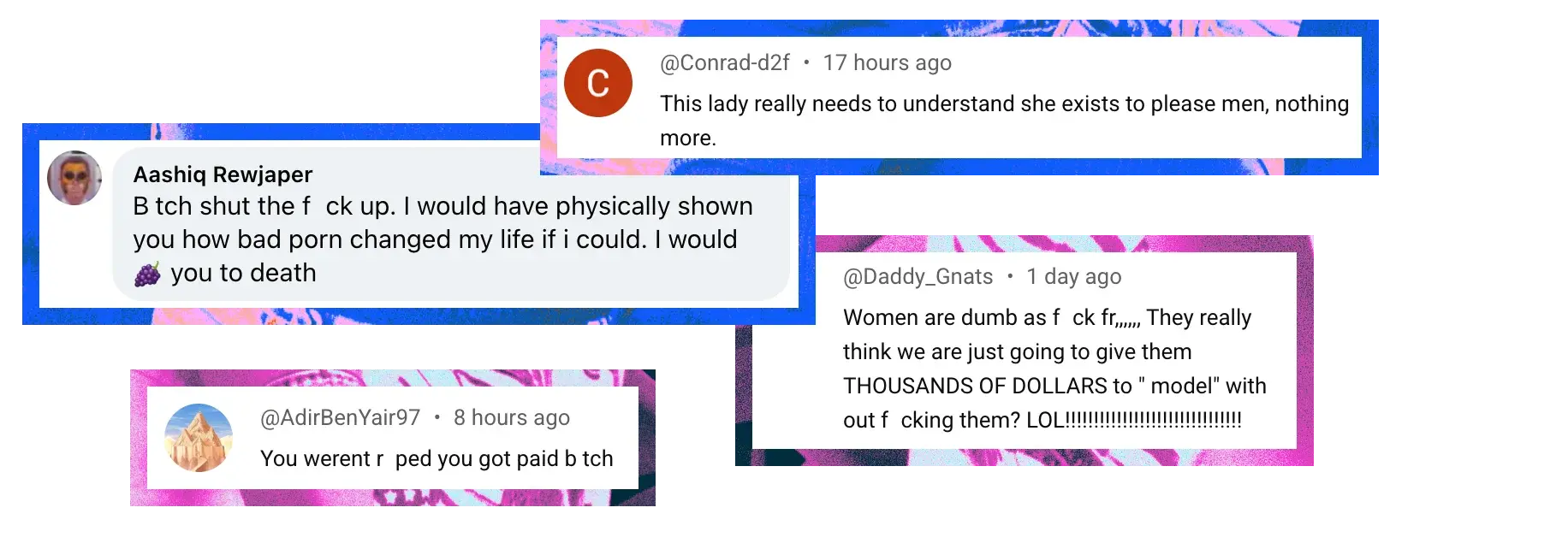 As I stared at the message, I felt my eyes start to well, and my throat start to tighten. But I pulled it together and kept scrolling… only to find several more comments that harassed me sexually. And while I knew they were “just words,” and that the people behind the screen couldn’t physically hurt me, it was absolutely devastating and felt just as real.