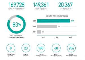 We share the facts with our target audience, youth and teens, by traveling around the world. Our ambassadors and presenters give informative and quality presentations to various audiences where we share resources to help educate our world on this issue.